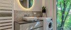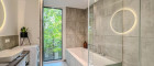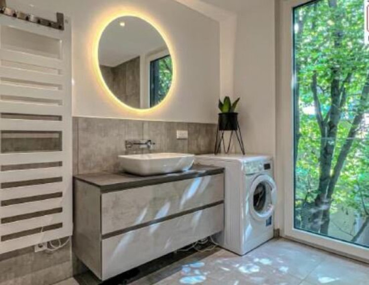 Die lichtdurchflutete Wohnung beeindruckt mit einer hochwertigen Ausstattung und einem offenen Wohn Essbereich, der durch eine moderne, unbenutzte Küche mit Premium-Geräten von Bosch ergänzt wird. Der großzügige Wohn- und Schlafbereich, ausgestattet mit einem begehbaren Schrankraum, führt direkt auf die weitläufige, mit Naturstein gestaltete Terrasse, die nahtlos in die grüne Umgebung übergeht.