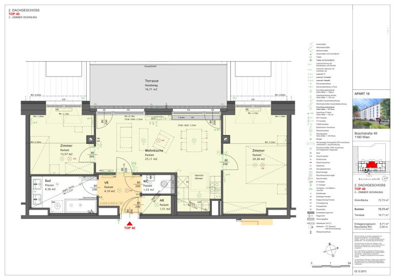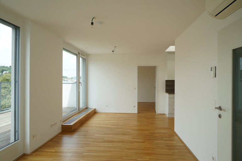 Zur Vermietung gelangt diese helle Dachterrassenwohnung mit fantastischem Blick auf den Kahlenberg im 6.Liftstock (letzter Stock) eines schönen Neubauhauses (2013).