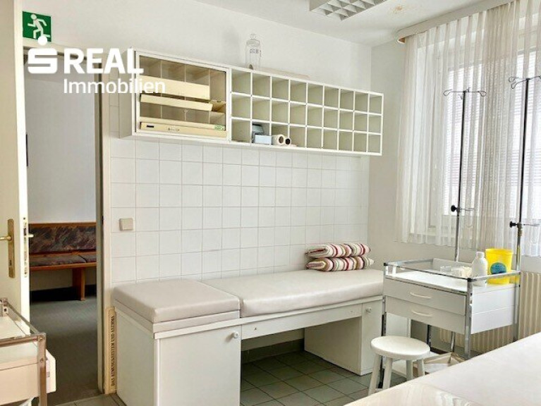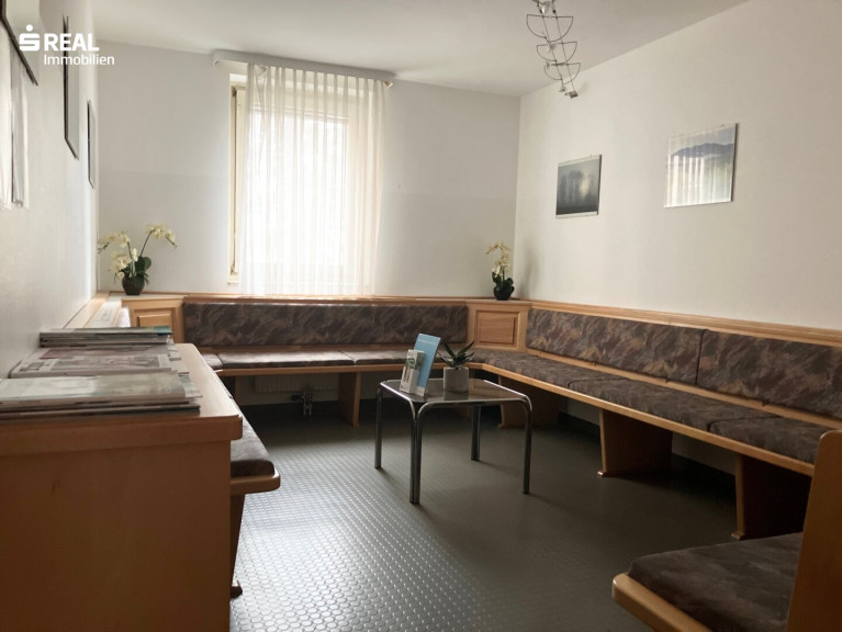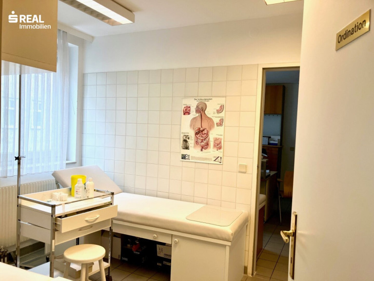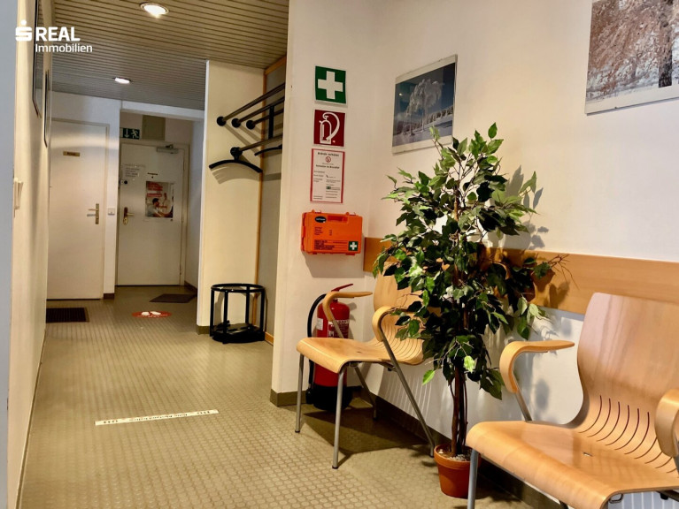 Vom Aufzug bez Stiegenhaus gelangt man in den offenen Empfangsbereich, über einen Verbindungsgang kann man 2 Warteräume/ Büros, 2 Behandlungsräume/ Büros, einen Technikraum, die Teeküche, sowie 1 Bad mit Waschtisch und Dusche bzw. 2 getrennte Toiletten mit Handwaschbecken erreichen. Alle Räume sind getrennt begehbar.