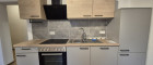 Die Küche ist in einem neuwertigen Zustand und ist ausgestattet mit Küchenkästen, Backofen, Geschirrspüler, Kühlschrank, Abwasch, Dunstabzug und E-Herd.