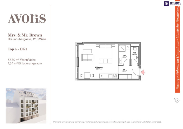 Wohnfläche: ca. 37,80m² + Kellerabteil: ca. 1,54m²