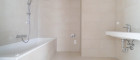 - Badezimmer mit Badewanne, Doppelwaschbecken und Waschmaschinenanschluss