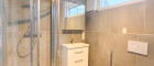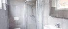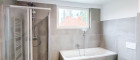 - ein geräumiges Badezimmer mit Badewanne, Dusche und Toilette