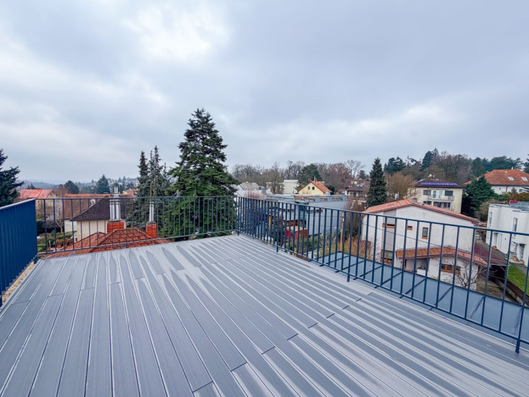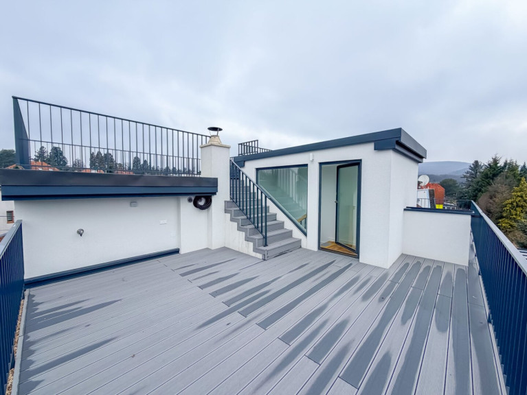 Am Dach befinden sich zwei Dachterrassen mit Rundumblick.