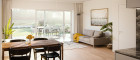 Hebe- Schiebeelement als Ausgangselement zwischen Wohnraum und Terrasse (belegt mit Betonsteinen)