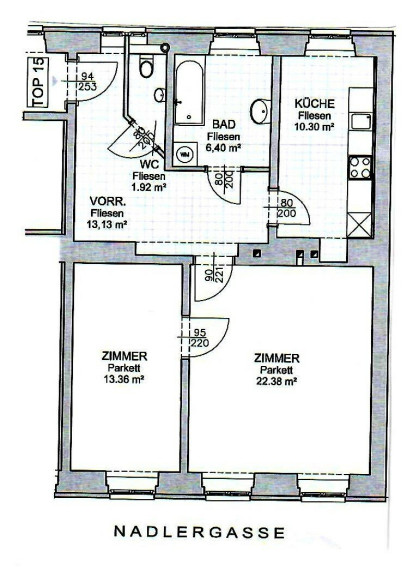 LAZARETTGASSE - NADLERGASSE, AKH-Nähe, sonnige 68 m2 Altbau, 2 Zimmer, Wohnküche, Wannenbad, Parketten, SAT/TV, 2. Liftstock