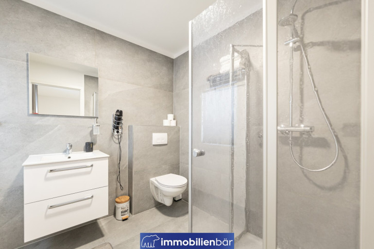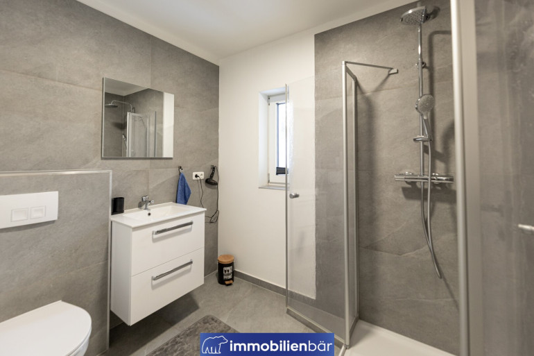 Fliesen, Fußbodenheizung, Bad mit Fenster, Dusche, Parkplatz