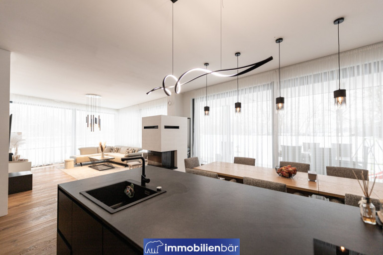 Wohnen auf einer Ebene, modern geplant und in ruhiger Lage: Dieser im Jahr 2024 fertiggestellte Bungalow in Breitwiesen bei Wallern an der Trattnach überzeugt durch ein durchdachtes Wohnkonzept, moderne Bauweise und ein großzügiges Grundstück mit vielseitigen Nutzungsmöglichkeiten. Mit einer Wohnnutzfläche von ca. 161,70 m² bietet das Haus fünf gut geschnittene Zimmer, zwei Badezimmer sowie ein separates WC. Große Fensterflächen und eine überdurchschnittliche Raumhöhe von ca. 2,80 m sorgen für helle Räume und ein offenes, angenehmes Wohngefühl. Die große Terrasse erweitert den Wohnraum ins Freie und bietet einen idealen Platz für entspannte Stunden im Garten. Das ca. 1.000 m² große Grundstück unterstreicht den großzügigen Charakter dieser Liegenschaft.
