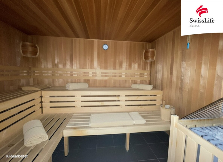 Parkett, Fernwärme, Wohnküche / offene Küche, Personenaufzug, Dusche, Sauna, Sporteinrichtungen