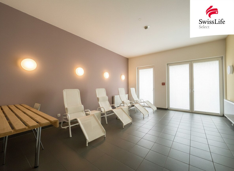 Wellness-Base: Sauna mit Ruheraum, Solarium, Fitnessraum, Dusche, Toilette
