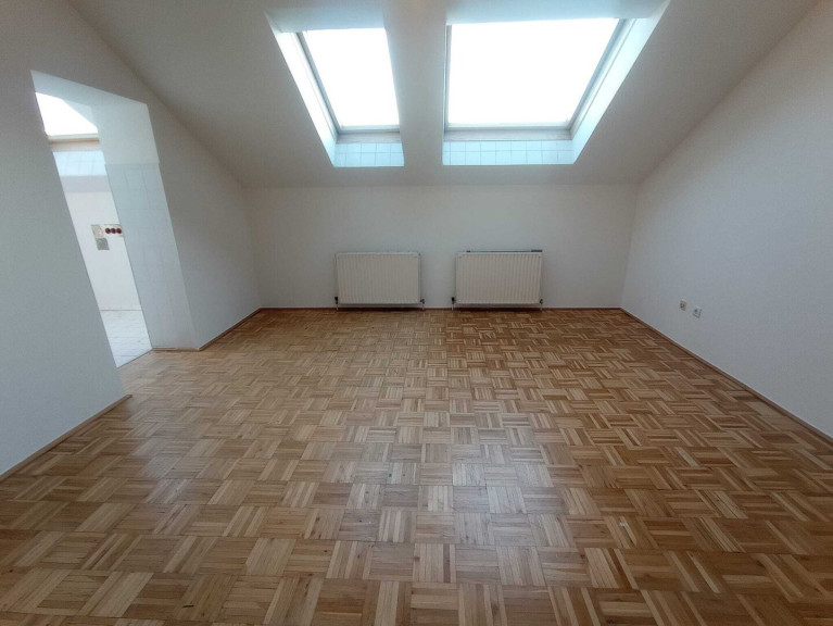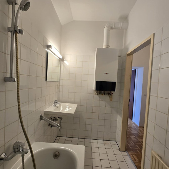 Die Wohnung liegt im Dachgeschoss (MIT Lift) und besteht aus einem sehr hellen Zimmer, mit angrenzender Küche, Badezimmer mit Waschbecken und Wanne, Waschmaschienenanschluss und einer Toilette, einem sehr kleinen Abstellraum und einem zentralen Vorraum. Beheizt wird diese Wohnung mittels einer Gasetagenheizung.