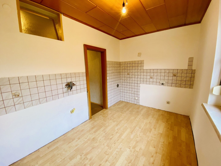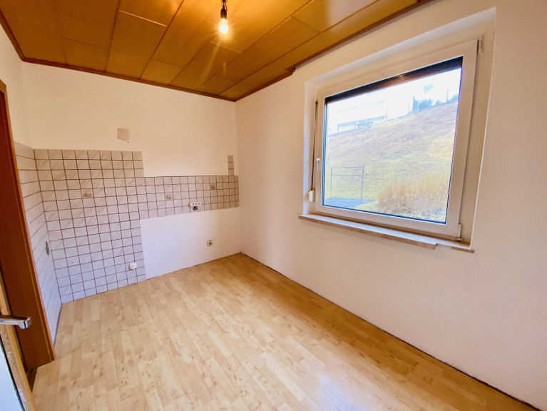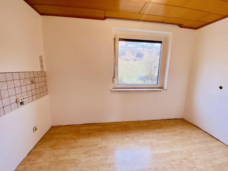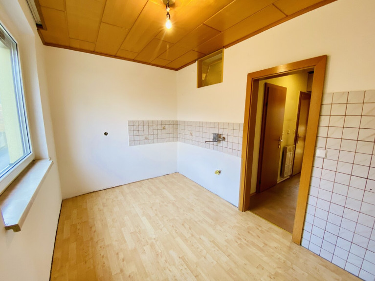 Küche: Die Küche ist zurzeit unmöbliert. Der Raum bietet jedoch Platz für eine Einbauküche und für eine kleine Essecke.