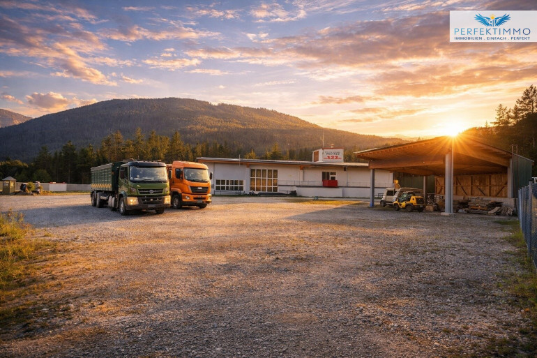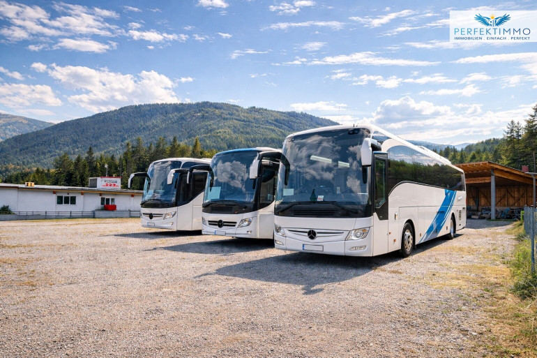 Der befestigte, ebene Platz eignet sich ideal für Unternehmen mit großen Fahrzeugen oder umfangreicher Logistik, wie etwa Bau- und Transportunternehmen, Bus- und LKW-Betriebe, Fuhrparks, Montagefirmen oder vergleichbare Gewerbebetriebe. Dank der direkten Zufahrt von der Bundesstraße sind auch größere Fahrzeuge wie Reisebusse oder LKW problemlos manövrierbar, großzügige Rangier- und Abstellflächen sind gegeben. Ein teilweise überdachter Bereich ermöglicht zudem eine wettergeschützte Lagerung von Materialien oder Fahrzeugen. Ein Stromanschluss ist vorhanden und erweitert die Nutzungsmöglichkeiten zusätzlich.