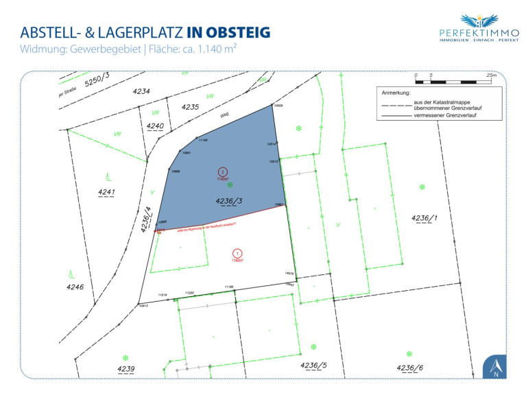 Zur Vermietung gelangt ein großzügiger Abstell- und Lagerplatz mit einer Fläche von rund 1.140 m² im Gewerbegebiet von Obsteig, in äußerst verkehrsgünstiger Lage direkt an der B189 Mieminger Bundesstraße. Die Liegenschaft überzeugt durch ihre hervorragende Erreichbarkeit, optimale Sichtbarkeit sowie durch vielseitige Nutzungsmöglichkeiten und richtet sich insbesondere an gewerbliche Mieter mit erhöhtem Platzbedarf.