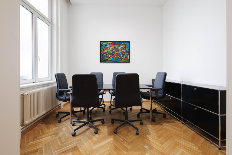Das Büro bietet ausreichend Platz für Beratungs- oder Klientengespräche. Die moderne, gepflegte Umgebung trägt zu einem professionellen Auftreten gegenüber Kund*innen bei.