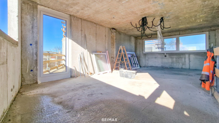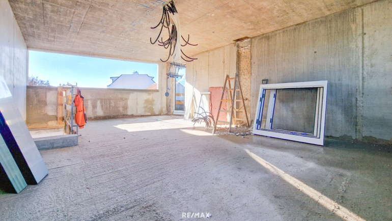 2. OG: Zimmer mit Zugang zur Terrasse, Zimmer mit Zugang zum Balkon, Badezimmer (Doppelwaschtisch, bodenebene Dusche, WM-Anschluss), separate Toilette, Gang, ca. 7,90 m² Balkon und ca. 7,90 m² Terrasse.