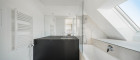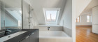 - Edler Parkettboden und großformatige Fliesen in den Nassräumen