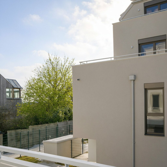 Die Ausstattung folgt einem zeitlosen Anspruch. Warmes Eichenparkett verleiht den Wohn- und Schlafräumen Ruhe und Charakter, während die Sanitärbereiche mit großformatigem Feinsteinzeug und einer klaren, architektonischen Gestaltung überzeugen. Fußbodenheizung und außenliegender Sonnenschutz ergänzen den Komfort dezent im Hintergrund – so, wie es in einem Neubau dieser Kategorie sein soll. Einbruchshemmend ausgeführte Wohnungseingangstüren runden das Sicherheitsgefühl stilvoll ab.