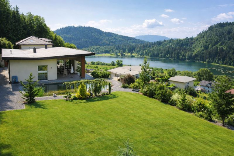 Moderne Seeblick-Villa mit Schwimmteich in Bestlage am St. Urbaner See