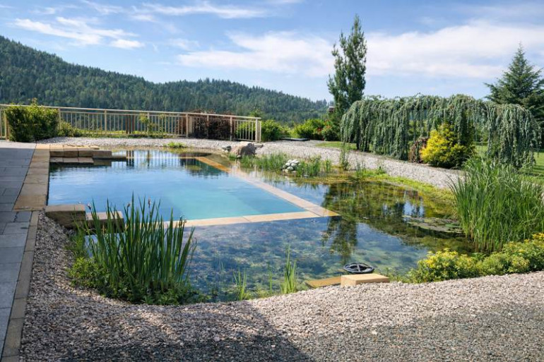Ein besonderes Highlight ist der private Schwimmteich mit angeschlossenem Wellnessbereich inklusive Sauna und Whirlpool – Ihr persönlicher Rückzugsort inmitten der Natur.