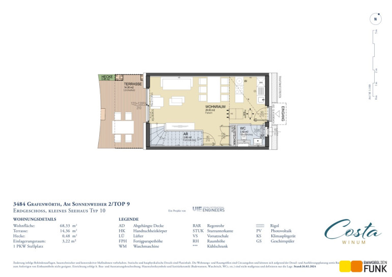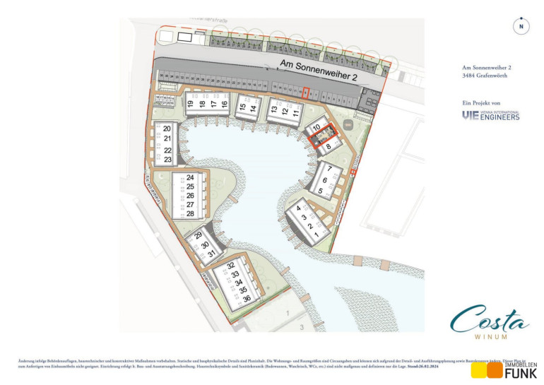 Sich den Traum vom Haus am See erfüllen und 365 Tage Urlaubsfeeling genießen. Das ist möglich im Sonnenweiher Grafenwörth, ca. 30 Fahrminuten von der Stadtgrenze Wiens entfernt, im Herzen der Region Wagram zwischen Wien und der Wachau. Ein nachhaltiges, gut durchdachtes Gesamtkonzept, erstklassige Architektur, hochwertige Ausstattung und viel Grünraum fördern das besondere Lebensgefühl am Sonnenweiher. Die Verkehrsanbindung Richtung Wien und Krems (S5, Stockerauer Schnellstraße) sowie nach St. Pölten (S33) ist ausgezeichnet. In der Gemeinde Grafenwörth gibt es ausreichend Einkaufsmöglichkeiten für Güter des täglichen Bedarfs, Kinderbetreuungseinrichtungen und Schulen. In diesem wunderbaren, regionalen Umfeld eingebettet, entstehen an einem mäanderförmig angelegten, ca. 36.000 m² großen See in mehreren Bauabschnitten insges. 170 Wohnimmobilien in Form von Einfamilien-, Doppel- u. Reihenhäusern im Eigentum sowie 36 kleine Seehäuser im Wohnungseigentum.