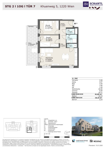 Wohnfläche: ca. 61,83m² + Terrasse: 16,15m² + Kellerabteil: ca. 2,14m²