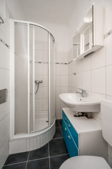 - Kleines Bad mit Dusche und WC