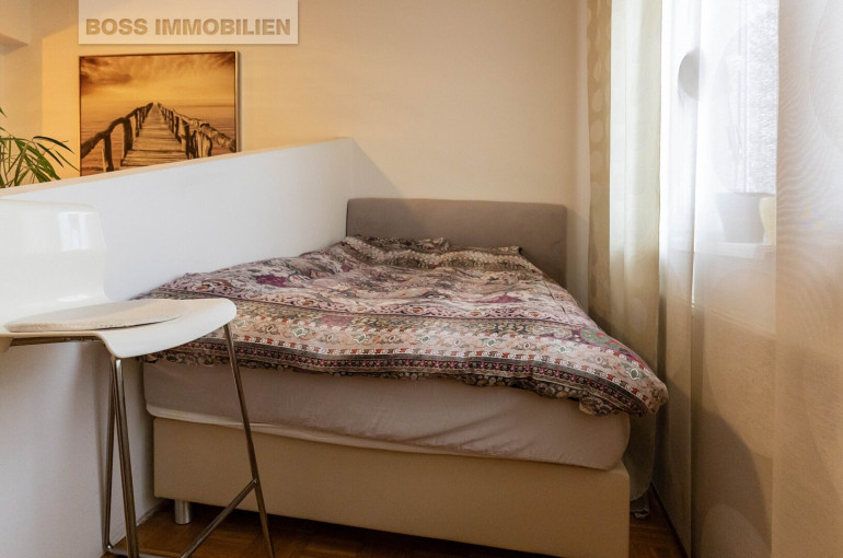 Diese charmante Einraumwohnung zeigt: Größe ist nicht alles! Auf 42 m² erwartet Sie ein durchdachtes Raumkonzept, bei dem Wohn- und Schlafbereich durch eine halbhohe Wand geschickt getrennt sind. So entsteht ein helles, offenes Wohngefühl, das dennoch Privatsphäre garantiert.