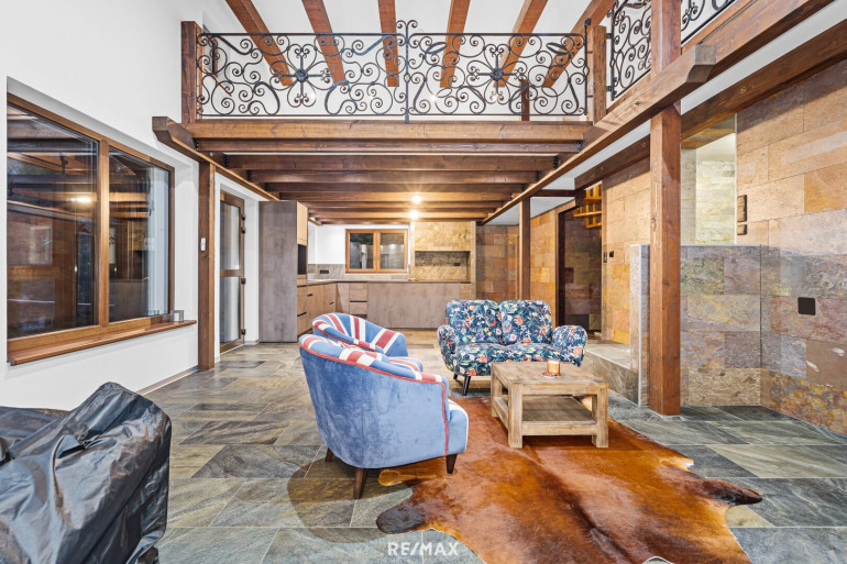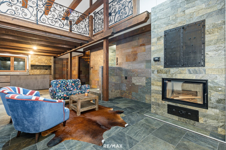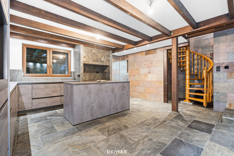 - Großzügiges Wohnzimmer mit offener Küche, Kamin mit wasserführendem Einsatz (Aquatic VH80), Jaccuzi und Zugang zur Terrasse