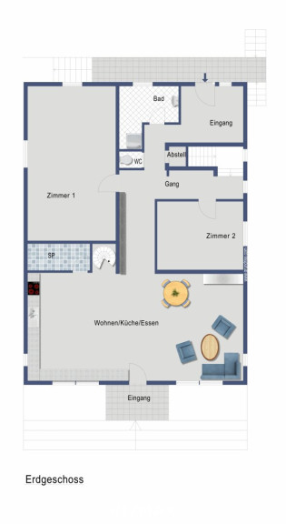 - Separates Gäste-WC, Abstellräume, Technik-/Heizraum