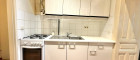 die Küche ist mit allen Geräten, Kühlschrank und einigen Küchenkästchen eingerichtet.