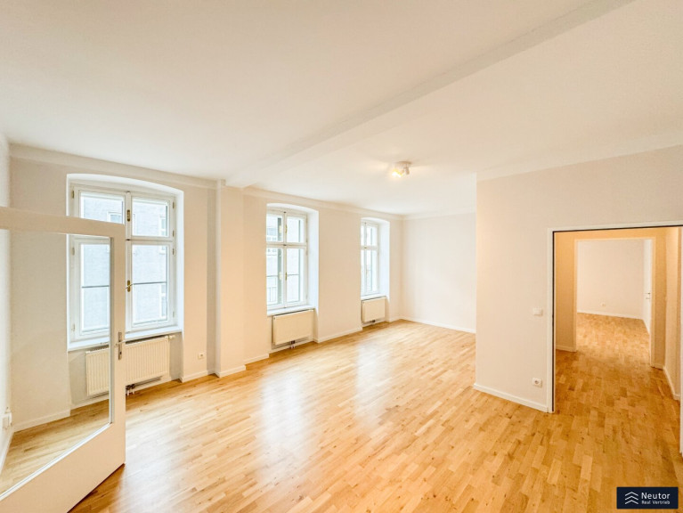 Diese stilvolle Altbauwohnung in ruhiger Innenhoflage verbindet klassischen Charme mit modernem Wohnkomfort. Ein Lift sorgt für einen bequemen Zugang und unterstreicht den gehobenen Standard. Beim Betreten gelangen Sie in den kompakten Vorraum, welcher mittels Raumtrenner vom großzügigen und lichtdurchfluteten Wohnzimmer abgetrennt istl. Die weitläufige Fensterfront sorgt für viel Tageslicht und eine offene, einladende Atmosphäre. Hier finden sowohl eine komfortable Wohnlandschaft als auch ein Essbereich mühelos Platz. Vom Wohnzimmer gelangen Sie direkt auf den typisch wienerischen Balkon, welcher als Pawlatsche ausgebildet ist. Ein idealer Ort, um im Freien zu entspannen und die Ruhe zu genießen. Ein zentral gelegener Flur führt zu den weiteren Räumen: Ein separates WC mit Handwaschbecken bietet zusätzlichen Komfort, während das Badezimmer mit Badewanne, Handwaschbecken und Waschmaschinenanschluss alle Annehmlichkeiten für den täglichen Gebrauch bereithält. Ein Einbauschrank am Gang sorgt für praktischen Stauraum. Am Ende des Flurs befinden sich zwei flexibel nutzbare Zimmer, ideal als Schlaf-, Kinder-, oder Arbeitszimmer. Beide Räume überzeugen durch ihre angenehme Größe und vielseitige Einrichtungsmöglichkeiten. Die großzügige Küche ist mit hochwertigen Elektrogeräten ausgestattet, bietet viel Arbeitsfläche und Stauraum und eignet sich sowohl für den täglichen Gebrauch als auch für ambitionierte Hobbyköche. Klassische Altbaudetails treffen auf moderne Ausstattung und schaffen ein harmonisches Gesamtbild, ein besonderes Zuhause mit hoher Wohnqualität.