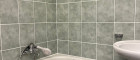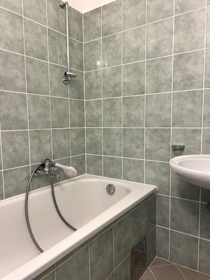 Im Badezimmer befindet sich neben Badewanne auch die Möglichkeit noch Kästchen als Stauraum unterzubringen.