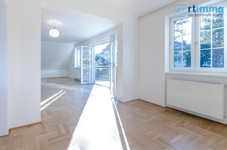In einem kleinen gepflegten Dreifamilienhaus (Neubau) am Fuße des Roten Bergs kommt eine moderne Balkonwohnung mit 70 m2 Dachterrasse zur befristeten Vermietung. Die Wohnung ist in Bestzustand und befindet sich im 2. Stock ohne Lift. Sie verfügt über ein großes gegliedertes Wohn-Eßzimmer (ca. 45 m2) mit Balkonausgang und weitere drei getrennt begehbare Schlafzimmer und zwei Bäder. Der Wohn- u. Eßbereich ist offen gestaltet, daher entsteht eine angenehme Großzügigkeit. Die weiße Küche ist komplett ausgestattet. Die Balkontüre ist faltbar, so daß Sie im Sommer zur Gänze geöffnet werden kann.