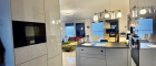 Lichtdurchflutete Freiheit & Tischlerhandwerk im Erdgeschoss Das Herzstück ist die über 50 m² große Wohnküche. Durch die riesige Fensterfront strömt das Licht bis in den letzten Winkel der hohen Räume. Hier wurde nichts dem Zufall überlassen: Die Küche vom Tischler ist ein wahres Stauraum-Wunder. Mit zwei Abwaschbecken und deckenhohen Schränken bietet sie unglaublich viel Platz, damit alles seinen geordneten Ort findet und die Arbeitsflächen frei bleiben.