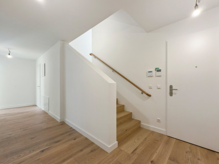 Spanning approx. 166 m² of living space, this maisonette unfolds over two residential floors and an expansive rooftop terrace. Every detail has been conceived to offer openness while preserving intimacy – with floor-to-ceiling glazing, fine materials, and flawless light design.