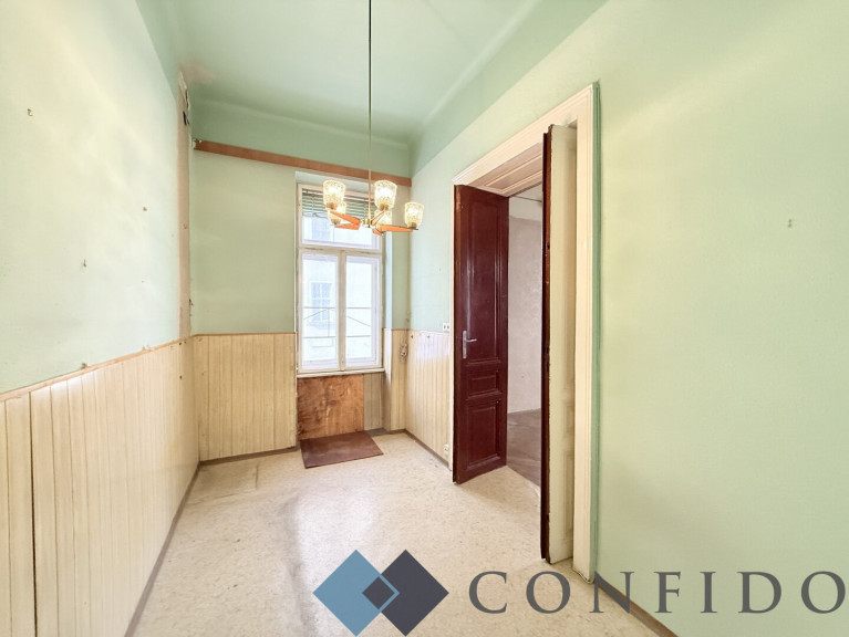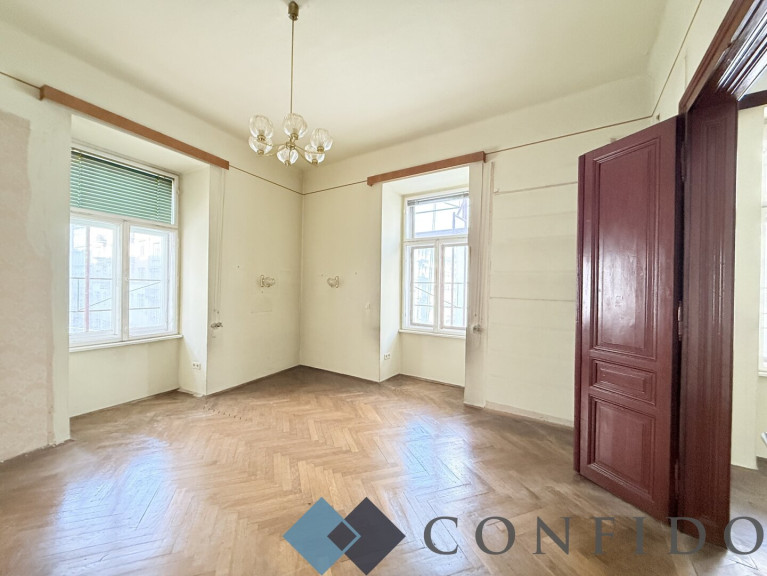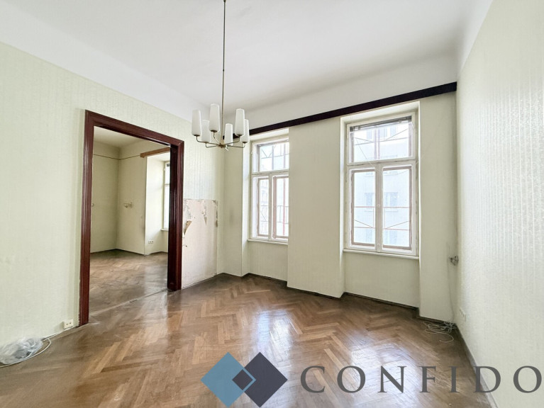Zum Verkauf gelangt eine sanierungsbedürftige Drei-Zimmer-Wohnung in begehrter Lage der Kaiserstraße. Das Herzstück der Wohnung bildet das rund 26 m² große Zimmer mit Parkettboden, das sich ideal als großzügiges Wohnzimmer eignen würde. Ergänzt wird dieses durch ein etwa 19 m² großes Zimmer sowie ein ca. 10 m² großes Kabinett, das sich flexibel als Schlafzimmer, Arbeitszimmer oder Kinderzimmer nutzen lässt. Vom zentralen Vorraum aus sind sowohl die separate Küche als auch die Toilette erreichbar. Durch eine durchdachte Raumgestaltung und individuelle Sanierungsmaßnahmen lässt sich hier ein neues Zuhause nach den eigenen Vorstellungen schaffen. Die Wohnung befindet sich im zweiten Liftstock eines gepflegten Altbauhauses und überzeugt durch ihren klassischen Charme sowie das große Entwicklungspotenzial.