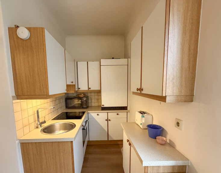 Die Wohnung befindet sich im Erdgeschoss eines Wohnhauses. Die vollständig möblierte Einheit bietet auf rund 28 m² Wohnfläche eine durchdachte Raumaufteilung: