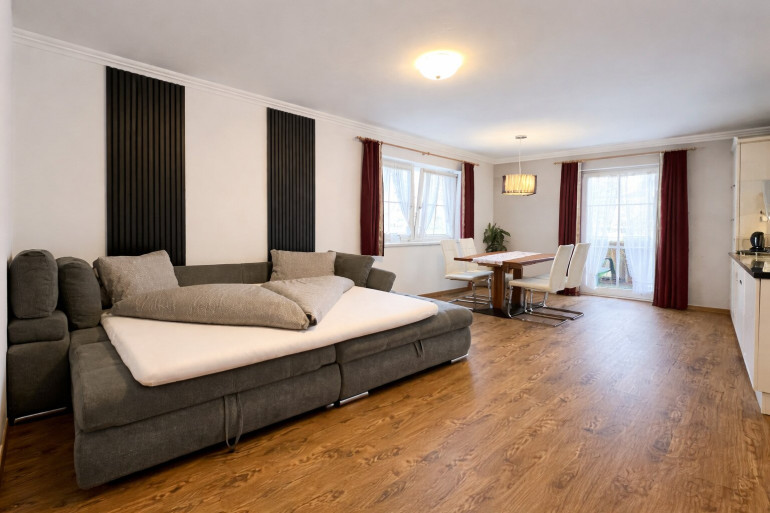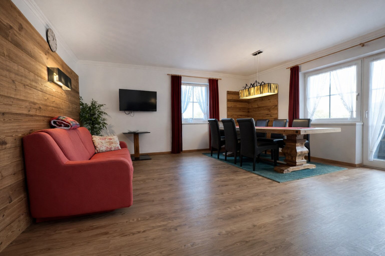 Beide Wohnbereiche verfügen über eigene Balkone, die zusammen mit der offenen Lage eine angenehme Besonnung über den gesamten Tagesverlauf gewährleisten. Ergänzend steht ein eigener Abstell- bzw. Lagerraum auf derselben Hausebene zur Verfügung, der funktional als Stauraum oder Skiraum genutzt werden kann.