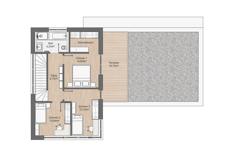 Im Obergeschoss laden helle Zimmer zum Rückzug und zur Entspannung ein. So entsteht ein Zuhause voller Behaglichkeit, Komfort und Lebensqualität, ideal für moderne Familien.