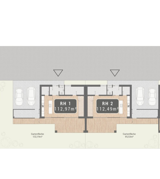 Die Haushälften bieten durchdachte Grundrisse und viel Platz zum Wohlfühlen. Der offene Wohn- und Essbereich mit direktem Terrassenzugang bildet das Herz des Hauses und schafft eine harmonische Verbindung zwischen drinnen und draußen.
