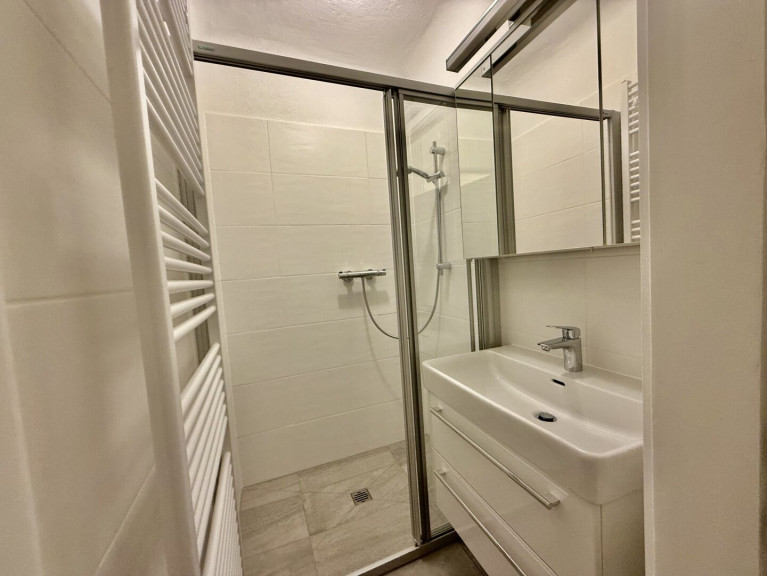 Fliesen, Laminatboden, Elektro, Etagenheizung, Einbauküche, Dusche