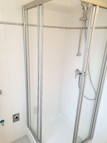- verfliestes Badezimmer mit Dusche WM Anschluss