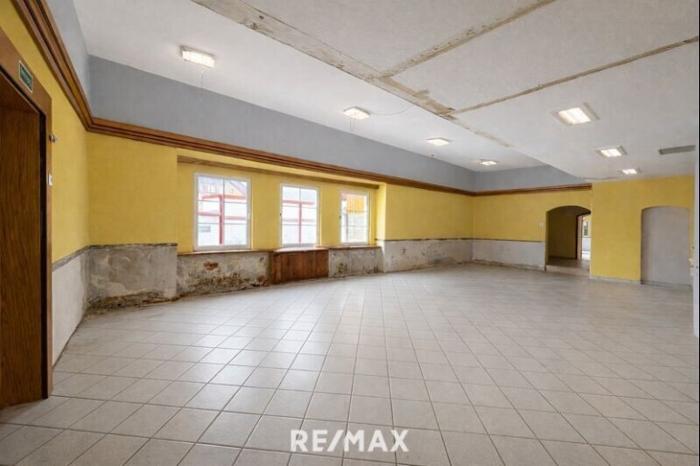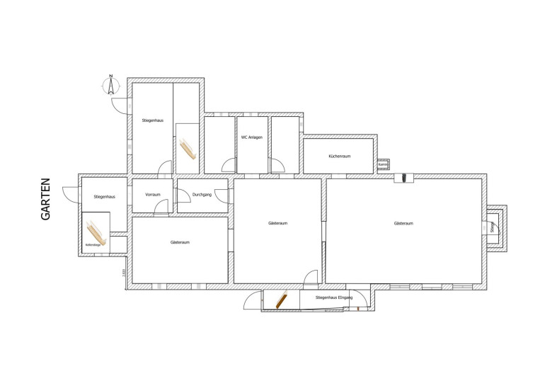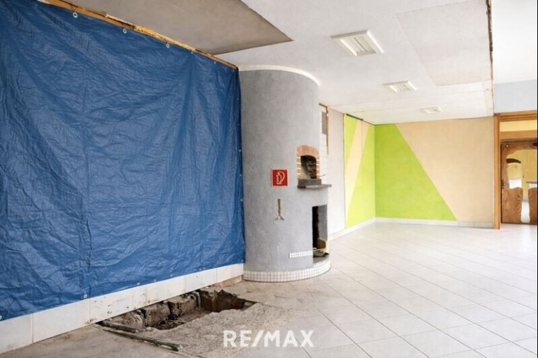 Die Gastronomiefläche im Erdgeschoss (ca. 155 m²) befindet sich in einem sanierungsbedürftigen, jedoch bereits vorbereiteten Zustand: