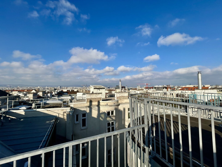 Die im 5. Liftstock gelegene Wohnung verfügt über drei Zimmer sowie eine großzügige Dachterrasse und wird befristet auf fünf Jahre vermietet.
