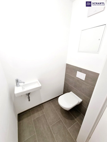 Ihre neue Wohnung lässt Ihr Herz höher schlagen und teilt sich in einen geräumigen Vorraumbereich mit Platz für eine Garderobe, einen praktischen Abstellraum mit Waschmaschinenanschluss, ein separates WC mit Handwaschbecken, ein stylisches Badezimmer mit Badewanne, 2 gemütliche Schlafzimmer mit Zugang zum Balkon, sowie ein herrliches Wohn-Esszimmer mit einem weiteren Zugang zur Rundum-Terrasse.