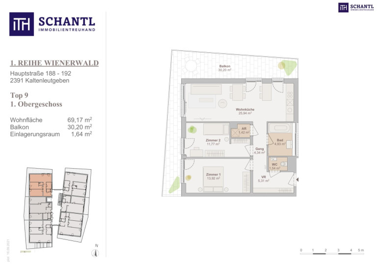 Wohnfläche: ca. 69,17m² + Balkon: ca. 30,20m² + Kellerabteil: ca. 1,64m²