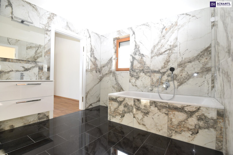 - Exklusive Bäder mit Marmorfliesen, Granitböden, Fenster, Dusche, Badewanne und WC