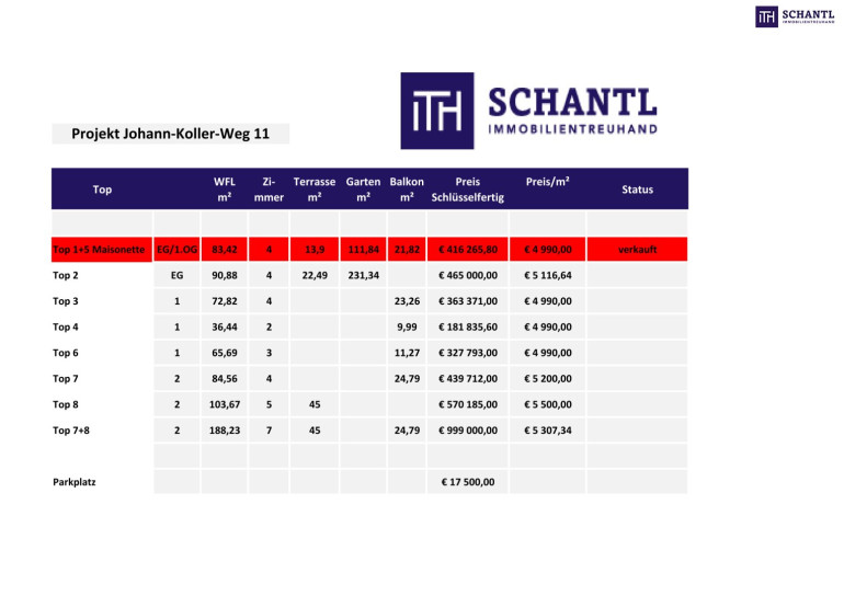 - Wohnung (Top 7): brutto € 439.712,00