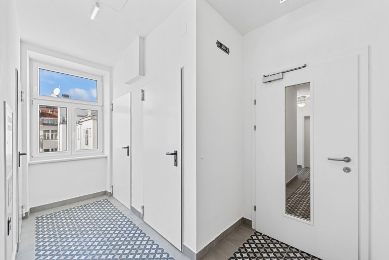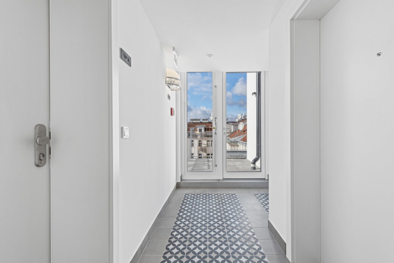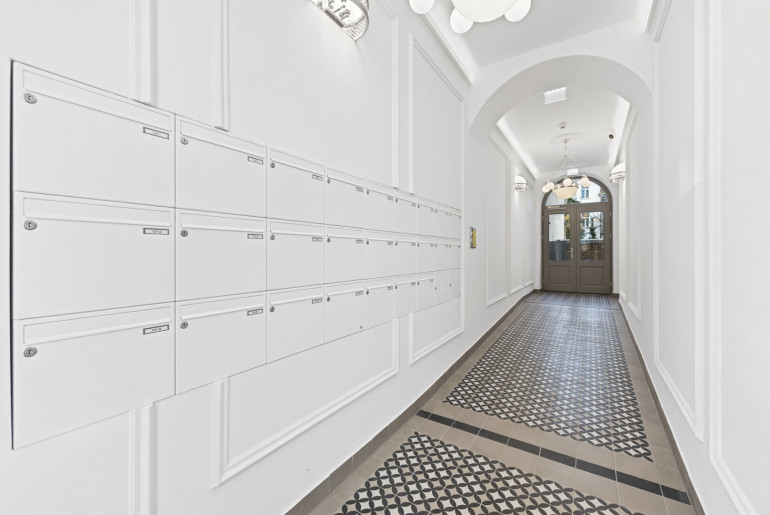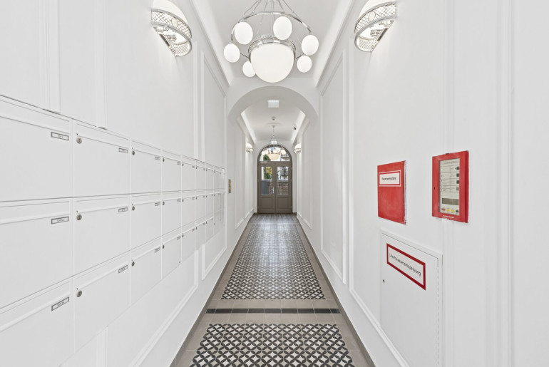 Der erste Eindruck lässt sofort erkennen, mit welcher Sorgfalt dieses Projekt umgesetzt wurde: Ein repräsentativer Entrée-Bereich mit kunstvollen Stuckelementen, indirekter Beleuchtung und dezent untermalter klassischer Musik empfängt Bewohner und Gäste gleichermaßen stilvoll. Die Gemeinschaftsflächen sind mit handverlegten Zementfliesen, typisch für die Wiener Altbauära, gestaltet – ein Detail, das die besondere Atmosphäre des Hauses zusätzlich unterstreicht.